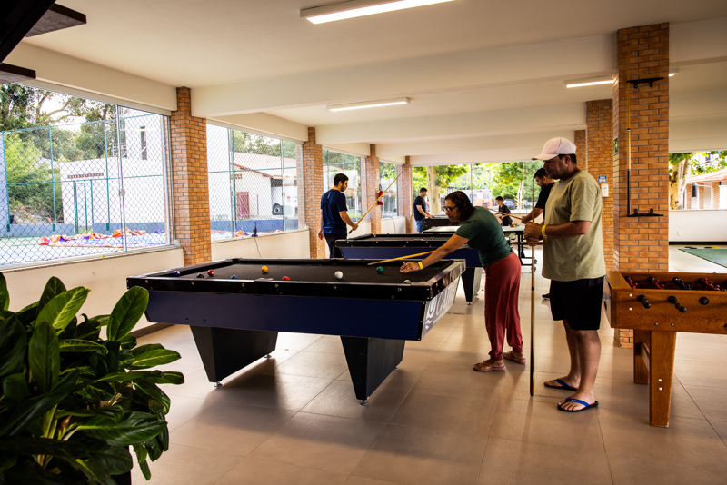 Diversão garantida com mesa de sinuca, pingue-pongue e jogos de mesa.